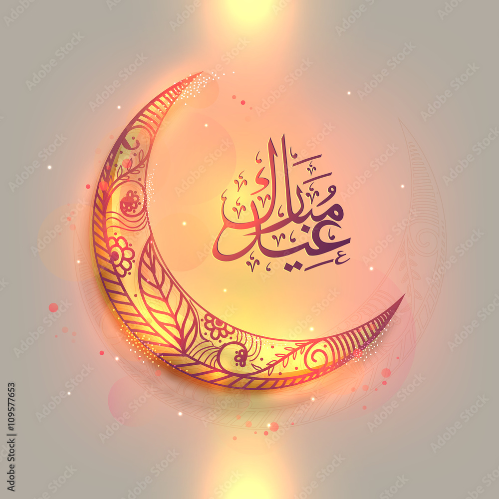 Crescent Moon With Arabic Calligraphy For Eid Mubarak Stock Vektorgrafik Adobe Stock